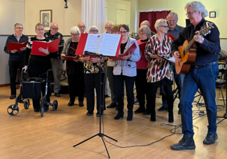![]() Lauluryhmä esiintymässä jäsentapaamisessa Karjaan työväentalolla 13.2.2025. |