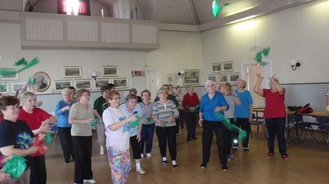 Käytämme nauhoja, jumppakeppejä sekä ohjattuja jumppakasetteja.