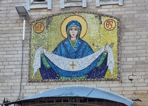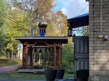Isä Haritonin opastuksella saimme tustua Pokrovan kirkkoon. Neitsyt Marian suojeluksen kirkko ( vihitty käyttöön 17.6.2001 ), valmistui 1.10.2000.