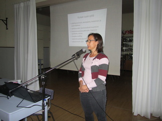 Päivän päätteeksi 17.10.2018 saimme kuunnella Kuuloliiton eläkkeellä olevaa ylilääkäriä Elina Rytsölän mielenkiintoista esitelmää ikäkuulosta.