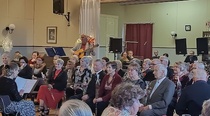 Ohjelmassa oli yhteislaulua sekä Anteron ja Pentin esittämä duolaulu. Vuoden aikana syntymäpäivää viettäneiden onnitteluruusujen jako, onnittelulaulua. Vt.kirkkoherra Katri Grönroosin tervehdyspuhe juhlaväelle, kakkukahvit. Hauskan joulusketsin esittivät meille Eeva-Riitta ja Anna-Liisa sekä lauluryhmän esittämä laulu, arpajaiset.