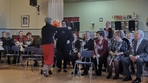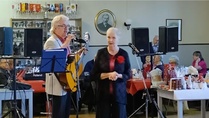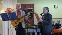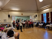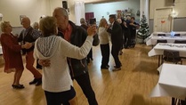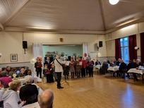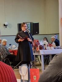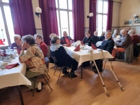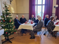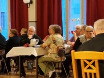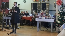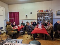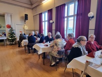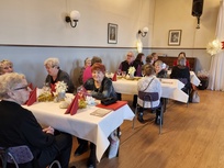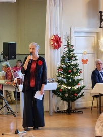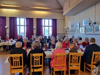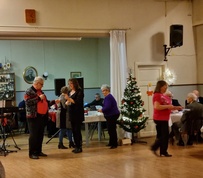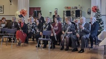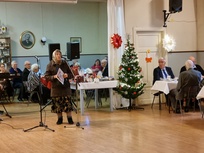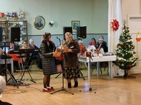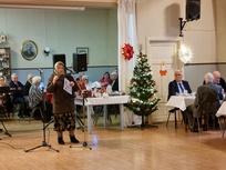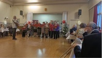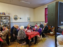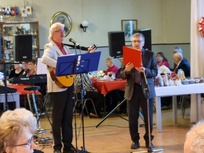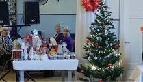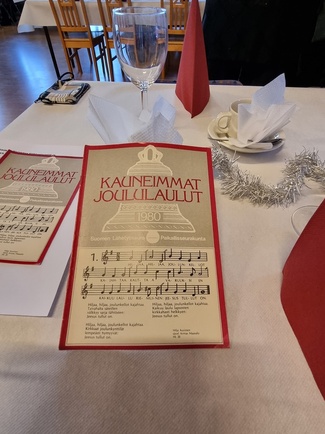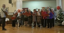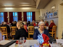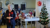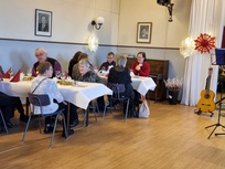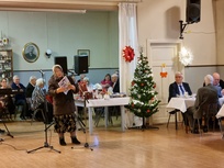 Ohjelmassa oli yhteislaulua sekä Anteron ja Pentin esittämä duolaulu. Vuoden aikana syntymäpäivää viettäneiden onnitteluruusujen jako, onnittelulaulua. Vt.kirkkoherra Katri Grönroosin tervehdyspuhe juhlaväelle, kakkukahvit. Hauskan joulusketsin esittivät meille Eeva-Riitta ja Anna-Liisa sekä lauluryhmän esittämä laulu, arpajaiset.