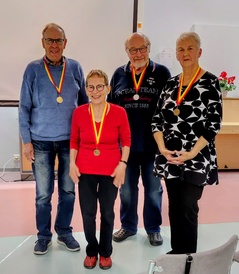 ![]() Voittajien on helppo hymyillä!Kuvassa vas. Kari sai kultaa, Jaakko sai hopeeta ja edessä vas. Sirkka sai pronssia kuten myös Sirkan vieressä seisova Iiris. Onnittelemme palkinnon saajia!! |