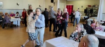 Harrastelijanäyttelijä Anne Karhunen, joka on esiintynyt monessa Lohjan teatteriesityksessä, esitti yleisölle tarinaa ja tilaisuuden lopuksi kaikki tanssimisesta kiinnostuneet pyörähtelivät tanssilattialla.