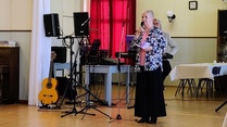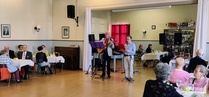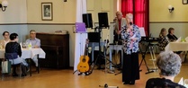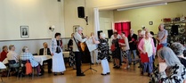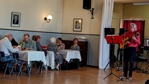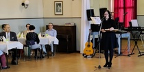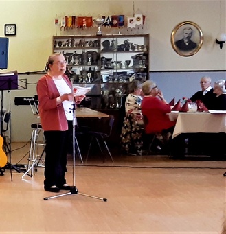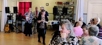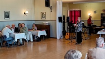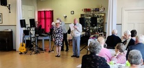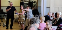 Harrastelijanäyttelijä Anne Karhunen, joka on esiintynyt monessa Lohjan teatteriesityksessä, esitti yleisölle tarinaa ja tilaisuuden lopuksi kaikki tanssimisesta kiinnostuneet pyörähtelivät tanssilattialla.