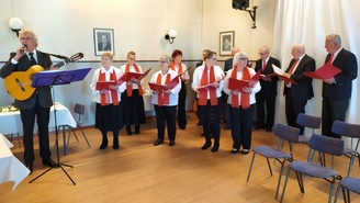 Yhdistyksen oma kuoro esitti myös muutaman laulun Antero Tiaisen säestämänä.