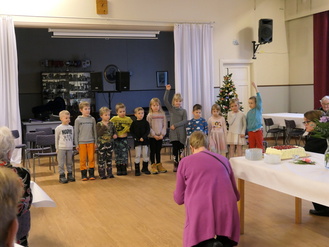 Päiväkoti Labyrintin lapset esiintyivät ja lauloivat juhlittaville muutaman laulun suomeksi ja englanniksi syntymäpäivän kunniaksi.
