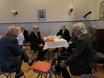 Juhlittaville jäsenille tarjottiin shamppanjaa ja mansikkakakkua.