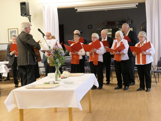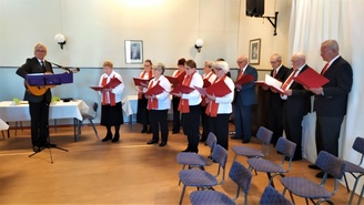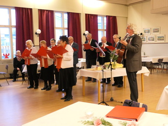 Yhdistyksen oma kuoro esitti myös muutaman laulun Antero Tiaisen säestämänä.