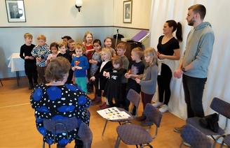 Päiväkoti Labyrintin lapset esiintyivät ja lauloivat juhlittaville muutaman laulun suomeksi ja englanniksi syntymäpäivän kunniaksi.