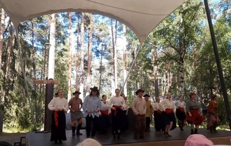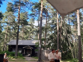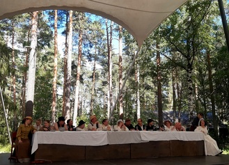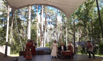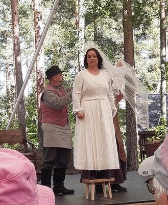 Lämpimässä ja kauniissa kesäsäässä tehtiin Kesäteatterimatka 3.7.2022 Taaborinvuorelle jossa esitettiin Nummisuutarit - Niin muuttuu maailma. Esitys alkoi klo 15:00. Taaborivuoren kahvilassa meille oli katettu omat pöydät väliaikatarjoiluna kahvi/tee kinkku-juustotasku tai feta-parsanyytti.