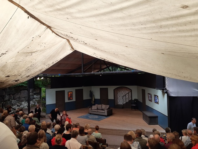 Kävimme jälleen Mustion kesäteatterissa katsomassa hulvattoman farssikomedian "Ulkomaalainen".