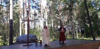 Lämpimässä ja kauniissa kesäsäässä tehtiin Kesäteatterimatka 3.7.2022 Taaborinvuorelle jossa esitettiin Nummisuutarit - Niin muuttuu maailma. Esitys alkoi klo 15:00. Taaborivuoren kahvilassa meille oli katettu omat pöydät väliaikatarjoiluna kahvi/tee kinkku-juustotasku tai feta-parsanyytti.